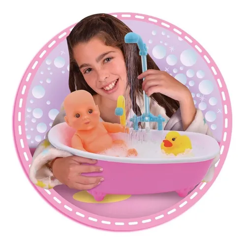 Muñeca Bañando a Luly con luz y sonido Contenido: 1 bañera, 1 muñeca Luly, 1 esponja, 1 toallita, 1 patito, 1 mamadera Edad Recomendada: A partir de 3 años Funciona con 4 pilas AA (no incluidas)