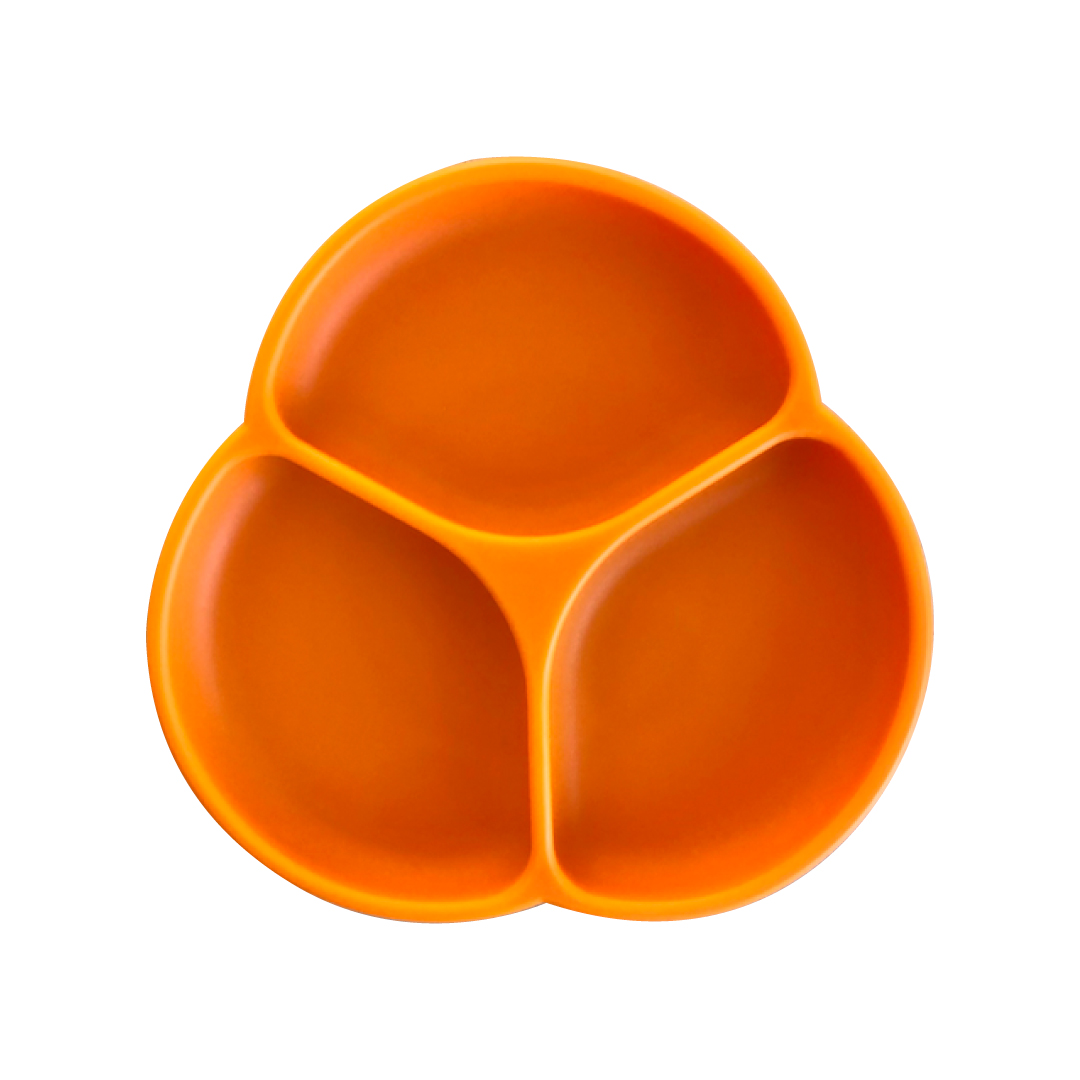 Plato de silicona para bebés suave, resistente con bordes curvos y divisiones, profundo que le permite a tu peque recoger los alimentos fácilmente. Se adhiere fácilmente a la superficie de la mesa plana y dura, evitando que el cuenco se deslice y derrame. Hace que la hora de la comida sea más divertida y fácil.